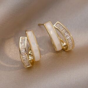 BRINCOS COM LAÇO DE STRASS & DESIGN DE PÉROLA – DOURADO