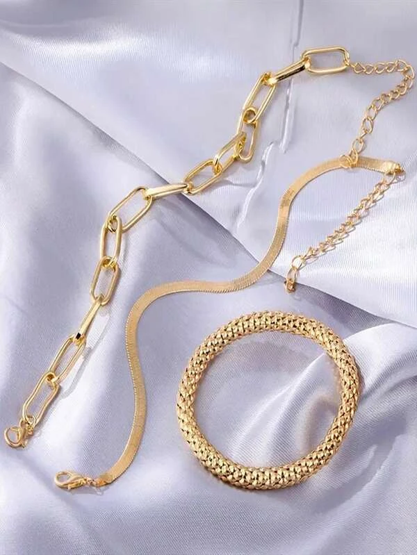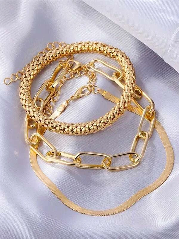 3 PEÇAS/CONJUNTO MINIMALISTA PULSEIRA DE CORRENTE